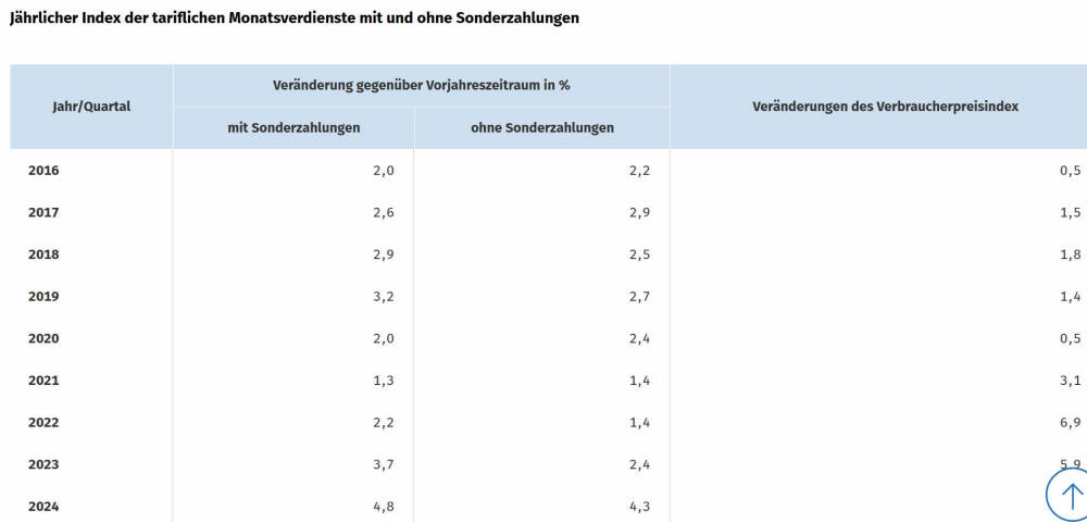 nahmen die Tarifverdienste im Jahr 2024 um 4,3 % zu, wie das