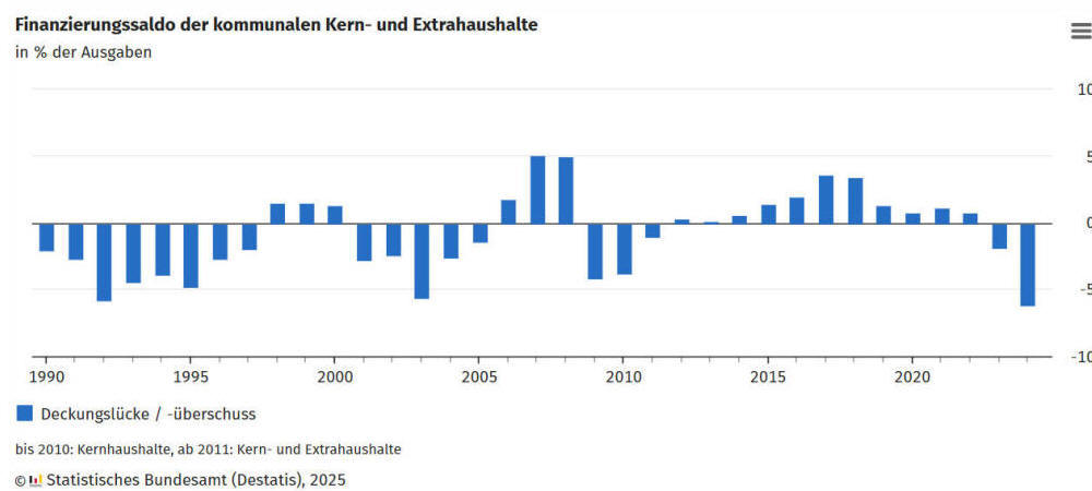 Kommunen verzeichnen im Jahr 2024 Rekorddefizit von 24,8