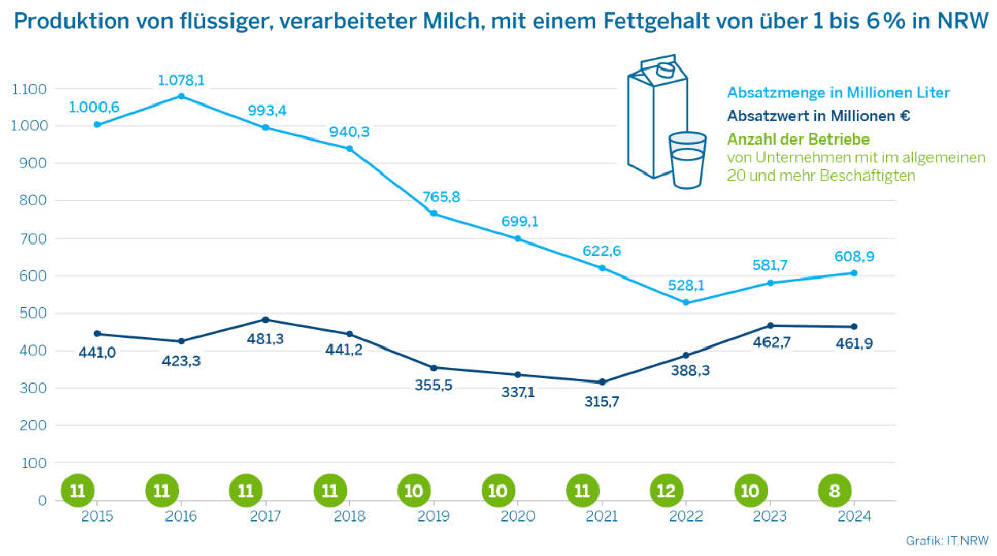 sieben nordrhein-westfälische Betriebe 309,6 Millionen Liter Milch
