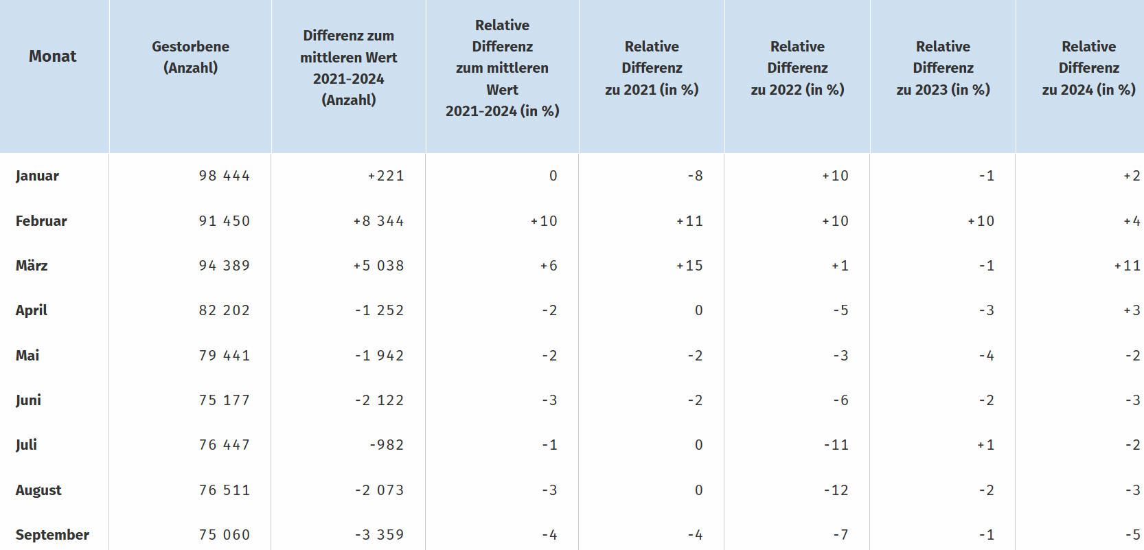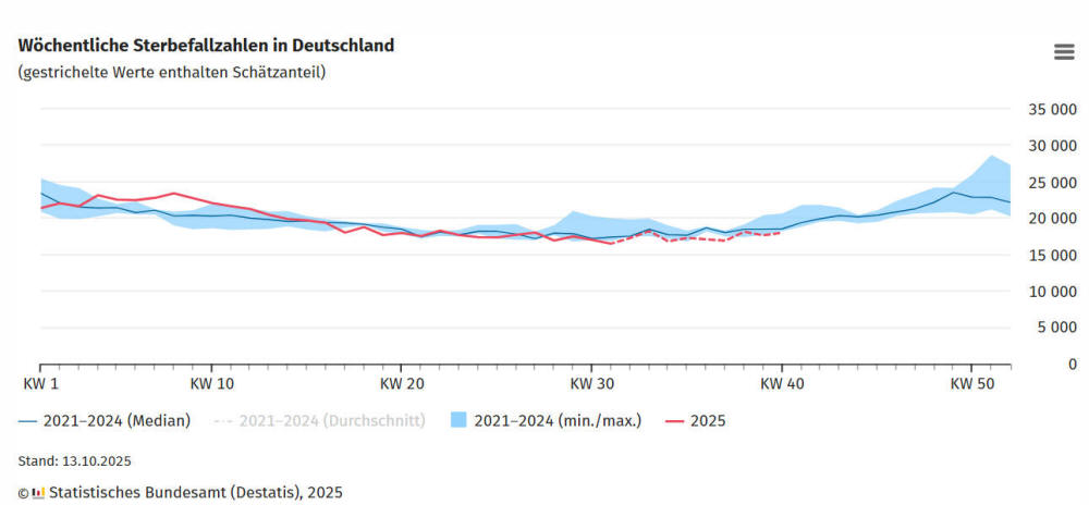 größtenteils aus, was die vergleichsweise niedrigen Sterbefallzahlen