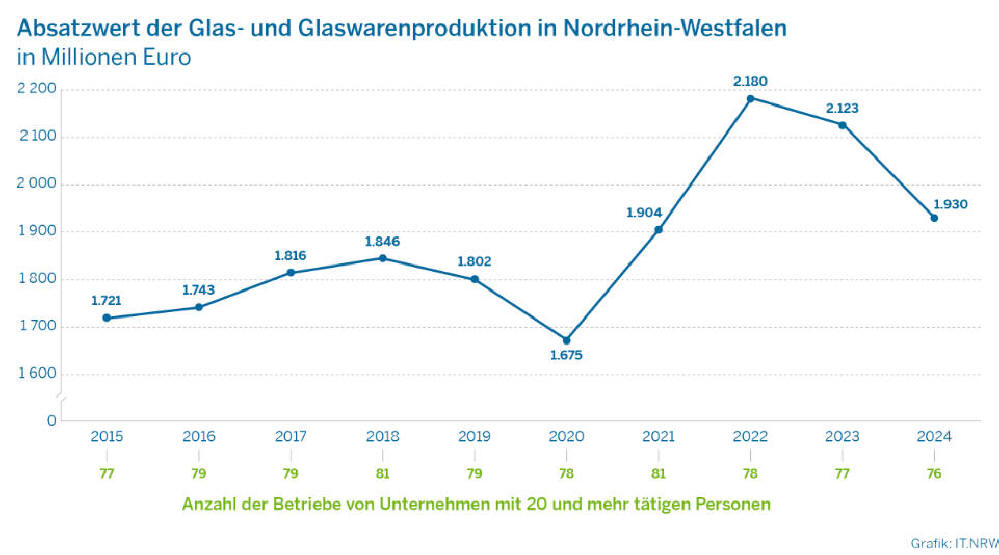 Glaswarenproduktion im Jahr 2024 auf 10,5 Milliarden Euro zurück;