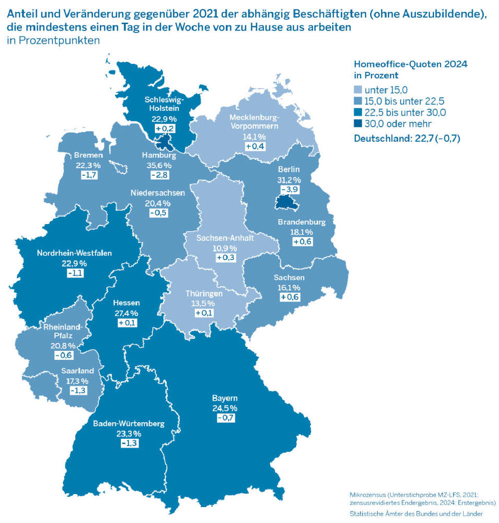 Bundesländern rückläufig Homeoffice bleibt in Deutschland