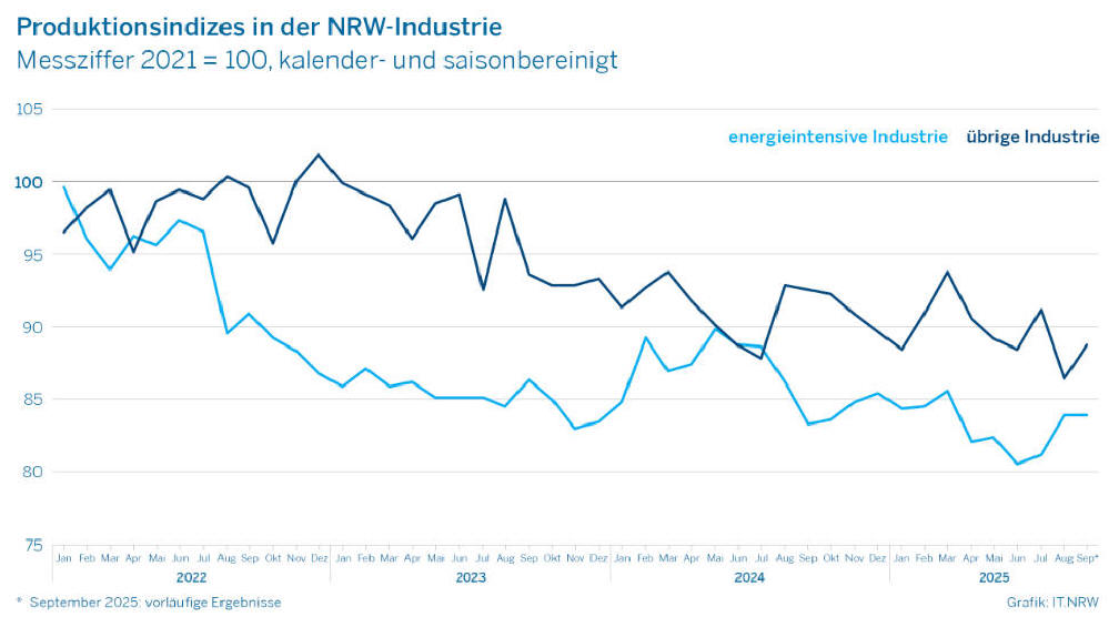 2025 waren in NRW für die energieintensiven Branchen im September