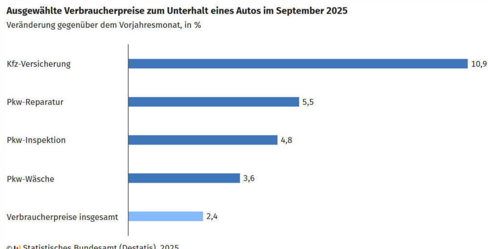 Kfz-Versicherung im September 2025 um 10,9 % teurer als