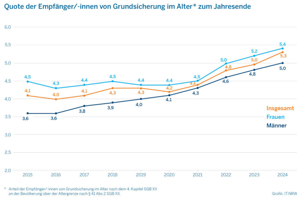 Ende 2024 bezogen in NRW 5,3 % der über 66-Jährigen Menschen