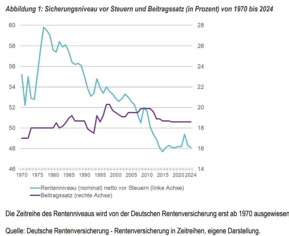 Seit den späten 1970er Jahren ist das Rentenniveau von knapp 60