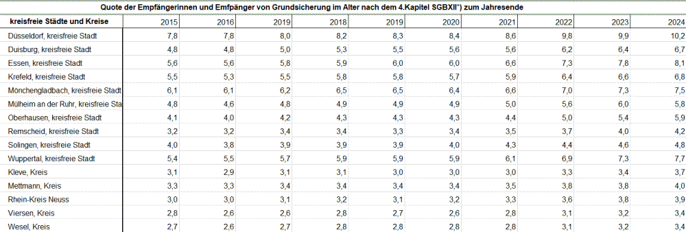 Grundsicherung im Alter. * NRW-Quote um 1,2 Prozentpunkte höher