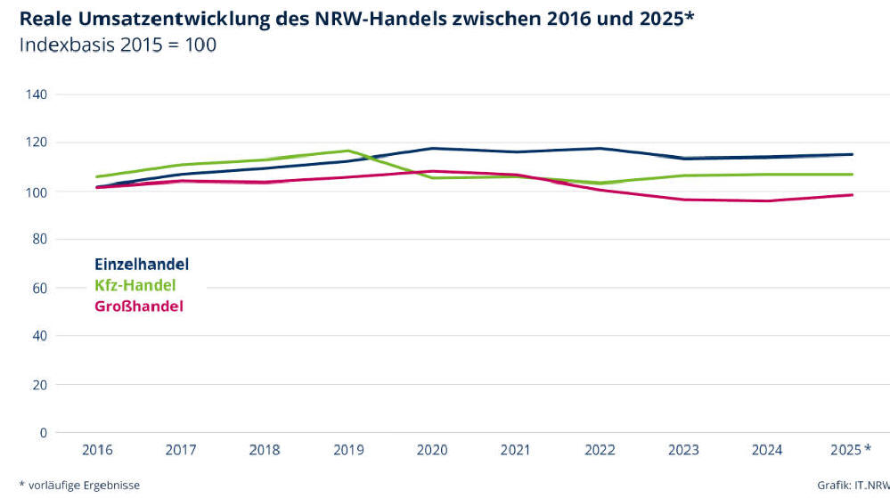 vorläufigen Ergebnissen der reale Umsatz im NRW-Einzelhandel 2025 um