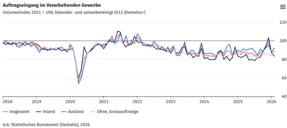 Zeitraum um 0,8 %. Im Januar 2026 fiel der Auftragseingang nach