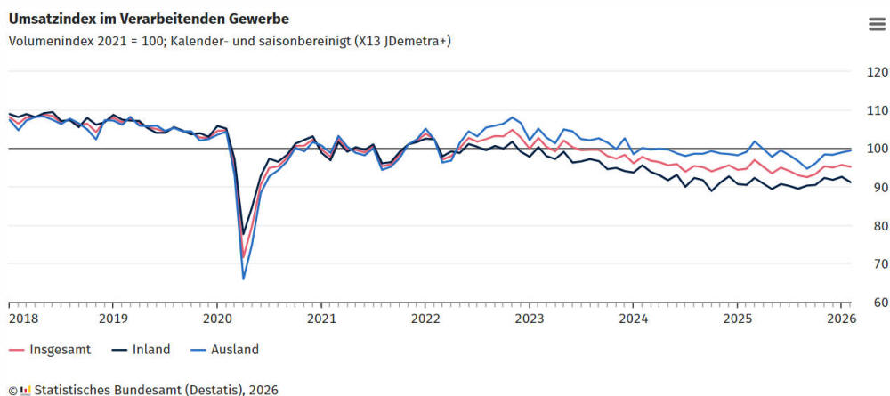 Auftragseingang im Verarbeitenden Gewerbe Februar 2026 (real,