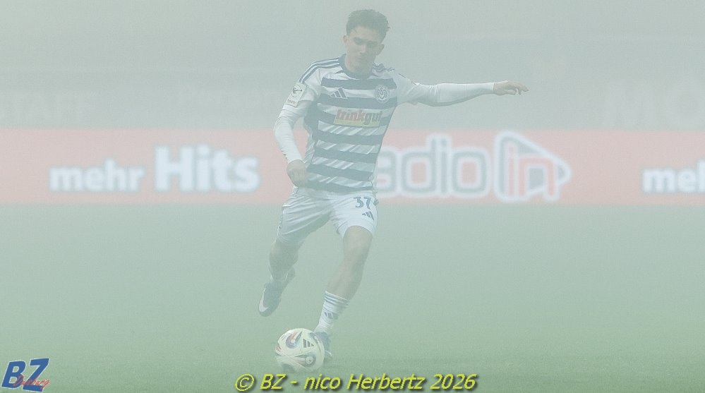Max Braune den Ball sichern. Der Nebel im Stadion wird dichter,