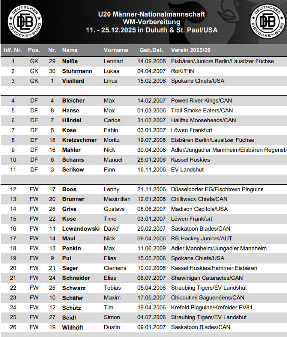 des NHL-Klubs Minnesota Wild. Die WM-Vorrunde endet am 31.