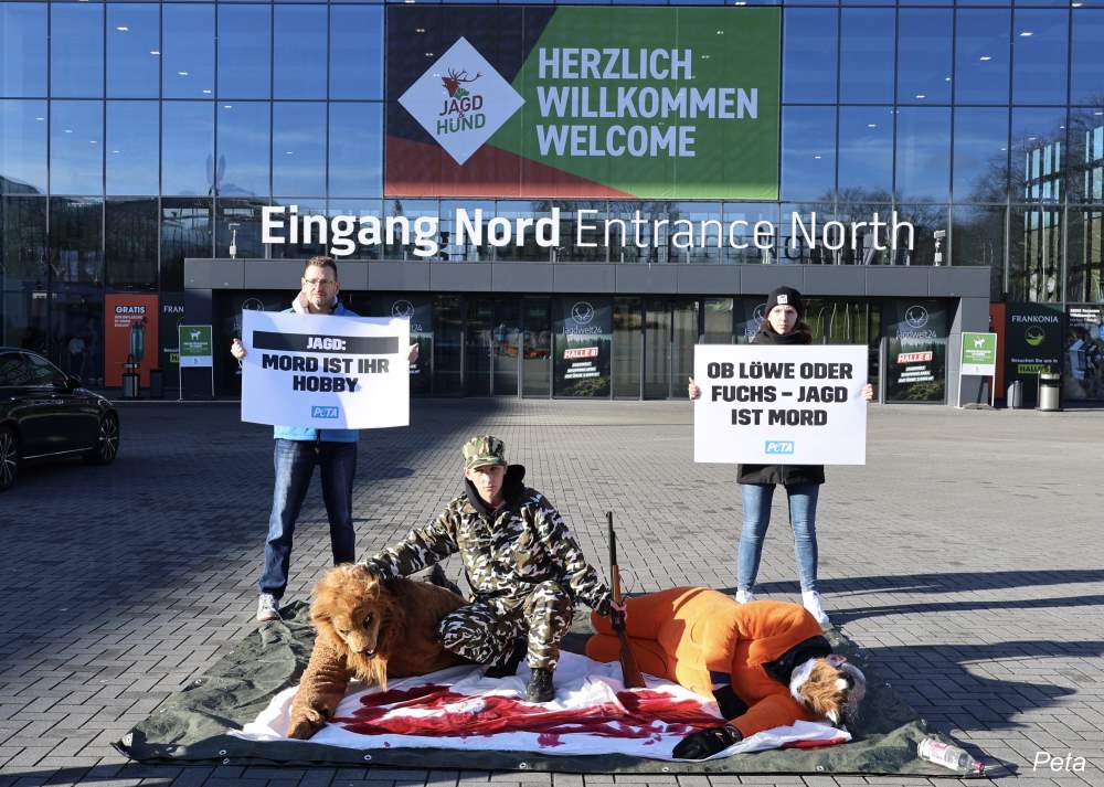 Natur zu setzen, demonstriert PETA mit einer blutigen Aktion