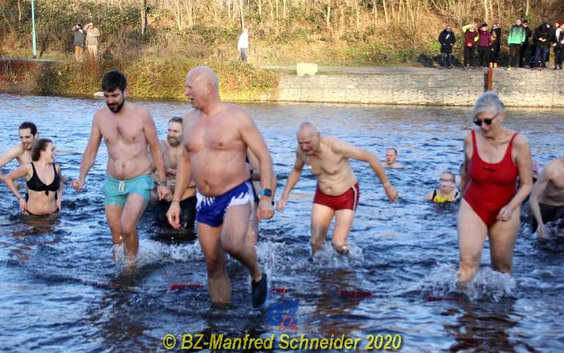 'Wasserratten' am Neujahrstag ins ins kalte Wasser.