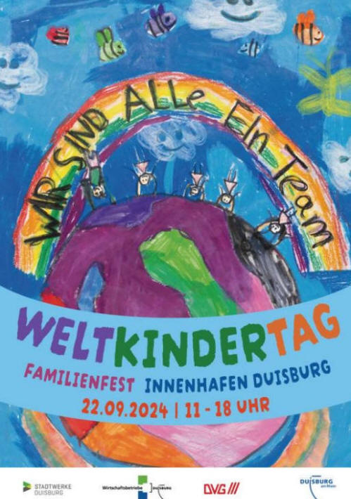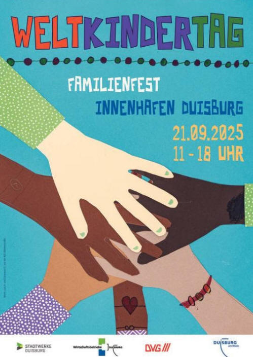 am 26.04.2026: Frühlingsfest![]() Malwettbewerb zum Weltkindertag 2026 - Einsendeschluss ist der 30. April Das beliebte Familienfest zum Weltkindertag findet in diesem Jahr am Sonntag, 20. September, im Innenhafen statt. Es steht unter dem Motto „30 Jahre Weltkindertag Duisburg - Bleibt frech, wild und wunderbar!“ Dafür geht der große Malwettbewerb in den Endspurt: Noch bis Donnerstag, 30. April, können Kinder ihre selbstgemachten Bilder beim Jugendamt der Stadt Duisburg einreichen. Die Bilder sollten Bezug auf das Motto nehmen. Dabei sind alle Stilmittel erwünscht, ob Bunt- oder Filzstifte, Wasser- oder Fingerfarben. Auch Collagen können erstellt werden. Die eingereichten Bilder sollten das gesamte Blatt erfassen und mindestens im Format A4, idealerweise in A3, gestaltet werden. Auf der Rückseite sollte der Name des Kindes, das Alter, die Wohnanschrift, die Telefonnummer und die Schule angegeben sein. Das Gewinnerbild wird nicht nur die offiziellen Flyer und Plakate des Familienfests zieren, sondern auch im gesamten Stadtgebiet zu sehen sein. Eingesandt werden können die Bilder an: Jugendamt der Stadt Duisburg, 51-41 - Jugendförderung z.H. Herrn Jan Wirtgen Steinsche Gasse 31 47051 Duisburg. Der Einsendeschluss ist der 30. April 2026. Das diesjährige Motto greift das Recht des Kindes auf Entfaltung seiner Persönlichkeit (Art. 29 der UN-Kinderrechtskonvention) auf. Es betont das Recht von Kindern, ihre Individualität, Kreativität und Stärken frei zu entwickeln – ohne Anpassungsdruck oder starre Erwartungen. „Frech, wild und wunderbar“ steht dabei für Neugier, Ausdruckskraft und Selbstwirksamkeit.