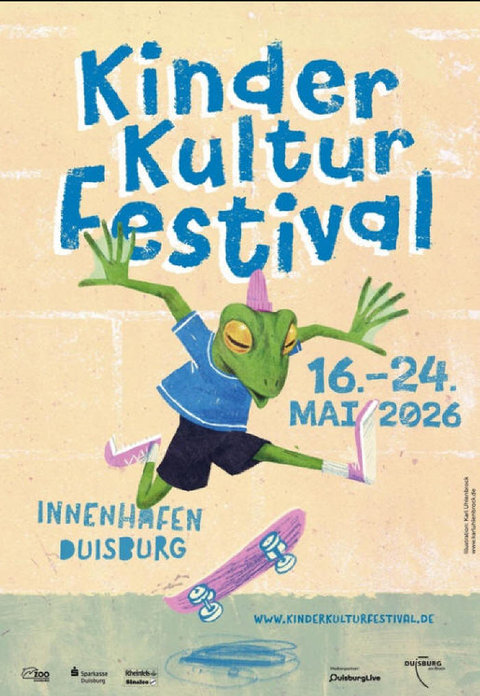 Freitag, 1. Mai LYDIA BENECKE - am 01. Mai 2026 in der Rheinhausenhalle Lydia Benecke - „Sadisten: BDSM vs. Verbrechen“ Dieser Vortrag gibt einen Einblick in die unterschiedlichen psychologischen Profile harmloser sowie gefährlicher sexuell sadistischer Menschen: Einerseits wird das „ganz normale Leben“ jener Menschen erläutert, die einvernehmlich ihren sexuellen Sadismus mit masochistischen Menschen ausleben. Andererseits wird die Gedanken- und Gefühlswelt der gefährlichen, kriminell sexuell sadistischen Menschen dargestellt - zu deren bekanntesten Vertretern Jack the Ripper und Ted Bundy gehören.' Lydia Benecke hat das erste umfassende, wissenschaftliche Erklärungsmodell zur psychologischen Unterscheidung gefährlicher von ungefährlichen sexuellen Sadisten entwickelt, das in Fachbüchern wie dem dritten Band der "Schriftenreihe der Gesellschaft für Kriminologie, Polizei und Recht“ sowie dem Sammelband „Destruktive Sexualität. Therapie und Risk-Assessment in der Forensischen Psychiatrie“ veröffentlicht wurde. In ihrem bebilderten Vortrag geht sie Fragen nach wie: - Was unterscheidet die einen von den anderen sexuell sadistischen Menschen? - Welche Bedürfnisse treiben sie an? - Was macht ihre Persönlichkeit aus? - Wie gestalten sie ihre Partnerschaften? Lydia Benecke erklärt auch, warum „Shades of Grey“ keinen realistischen Einblick in die Beziehungsführung zwischen Menschen, die BDSM praktizieren, gibt und warum Christian Grey eher ein gefährlicher als ein einvernehmlicher sexueller Sadist ist. Tickets und Infos unter: https://monochromat-booking.ticket.io/qqwapy92/?lang=de Veranstaltungsort: Rheinhausenhalle, Beethovenstraße 20 - 47226 Duisburg Einlass: 19 Uhr | Beginn: 20 Uhr | Vortrag Samstag, 16. Mai MOMENTUM: GRÜN - Eine “Mit-Mach-Ausstellung” im ruhrKUNSTort • Fabrikstraße 23 • 47119 DU-Ruhrort Information und Pressemitteilung Unter dem Titel :MOMENTUM: plant der ruhrKUNSTort ein Projekt, mit dem Künstlerinnen und Künstler aufgerufen werden, sich mit einem Kunstobjekt eigener Wahl an einer Gemeinschaftsausstellung zu einem bestimmten Thema zu beteiligen. Nicht zuletzt auch abhängig von Zuspruch und Resonanz ist an sich erstmal grundsätzlich geplant, dass sich das Projekt „MOMENTUM“ jährlich und mit einem jeweils neuen Thema wiederholt. ![]() Zu diesen Zwecken stellt der ruhrKUNSTort an der Fabrikstraße 23 in 47119 Duisburg- Ruhrort 3 Wandflächen über gesamt ca. 30 Quadratmeter sowie zugehörige Bodenflächen und in geringer Stückzahl ebenfalls vorhandene Aufstellmöglichkeiten in Form von Podesten, usw., zur Verfügung. Als mögliche Ausstellungsobjekte können grundsätzlich und einstweilen zunächst formatunabhängig eingereicht werden Bilder aus Fotografie und Malerei, Zeichnungen, Skizzen, Sketche, usw., sowie z.B. auch Skulpturen, Plastiken oder sonstige Objekte. Das Motto der :MOMENTUM: - Reihe in diesem Jahr lautet „GRÜN“. Die Ausstellung ist geplant für die Zeit vom 16. Mai bis 14. Juni 2026 und soll mit einer Vernissage am 16. Mai ab 18:00 Uhr, zu der natürlich die ausstellenden Künstlerinnen und Künstler sowie interessierte Besucherinnen und Besucher herzlich eingeladen sind, eröffnet werden. Für eine erste Kontaktaufnahme interessierter Künstlerinnen und Künstler empfiehlt sich ein Besuch im ruhrKUNSTort freitags von 16:00-18:00 Uhr oder sonntags von 15:00-18:00 Uhr oder einfach eine eMail an ruhrkunstort[at]gmx.de KinderKulturFestival ab 16. Mai im Duisburger Innenhafen Das traditionelle KinderKulturFestival verwandelt vom 16. bis 24. Mai den Duisburger Innenhafen in eine große Bühne für Fantasie, Kreativität und Entdeckergeist. Besucherinnen und Besucher erwartet ein umfangreiches und in Teilen kostenloses Angebot: Neben Theater, Mitmachaktionen und interaktiven Installationen bietet das von den Kulturbetrieben Duisburg organisierte Event Magie, Comedy, Tanz und Live-Musik sowie Workshops zum Rätseln, Staunen und Tüfteln. Internationale Künstler – das Programm im Detail Im Mittelpunkt steht die Erlebnisausstellung „Tüfteln & Knobeln“. Hier können kleine und große Besucherinnen und Besucher Codes knacken, verrückte Puzzle lösen und ihre Geschicklichkeit testen: „Das KinderKulturFestival steht seit vielen Jahren für Neugier, besondere Begegnungen und kulturelle Teilhabe“, berichtet Festivalleiter Clemens Richert. ![]() © Karl Uhlenbrock „Wir möchten Kinder ermutigen, Neues auszuprobieren, ihre Kreativität zu entdecken, einfach mitzumachen. Das unterstreicht ebenfalls das Plakatmotiv von Illustrator Karl Uhlenbrock.“ Daher wird der Innenhafen zu einem Ort voller Überraschungen: Die katalanische Compagnie „Toc de Fusta“ präsentiert mit ihrer neuesten Produktion „Arrels“ 20 großformatige Spiele aus aller Welt, während die Schweizer „Compagnie Banjocircus“ zu einem Straßenspektakel einlädt. Gemeinsam wird der „Twist“ getanzt. ![]() Arrels ©Toc de Fusta Beim „Circus Barbar“ aus Tschechien wartet ein hölzerner Elefantenverleih auf neugierige Gäste und bei Martine Dufresne aus Belgien lernen kleine Künstlerinnen und Künstler, lustige Papierhüte zu basteln, mit denen man im Anschluss übers Festivalgelände flanieren kann. ![]() Circus Barbar © Waxwing Theatre Traditionell spielt auch das Theater beim KinderKulturFestival eine zentrale Rolle: „Los Hobos – Vagabunden“ zeigen als Auftakt eine nonverbale Zirkusshow mit Live-Musik zum Thema Migration und Zusammenhalt. Das Theater „Zitadelle“ bringt erneut sein preisgekröntes Figurentheater auf die Bühne und das wohl liebenswerteste Geschöpf der deutschen Kinderliteratur, das Urmel, wird sich ebenfalls in einem Musical blicken lassen: „Es ist immer wieder ein Highlight, dass wir so viele internationale Künstlerinnen und Künstler hier in Duisburg begrüßen. Gemeinsam machen wir Kinderkultur erlebbar“, sagt Clemens Richert. ![]() Fuchs du hast die Angst gestohlen - ©Theater Zitadelle