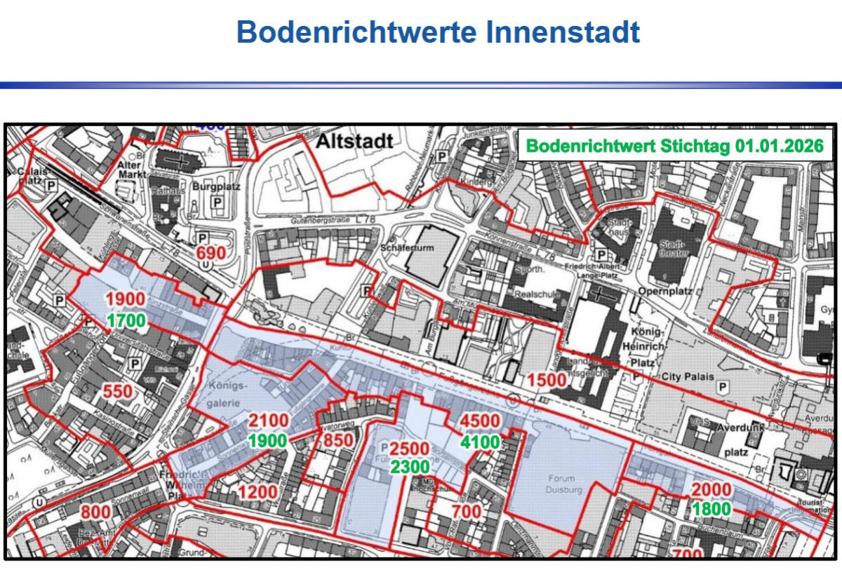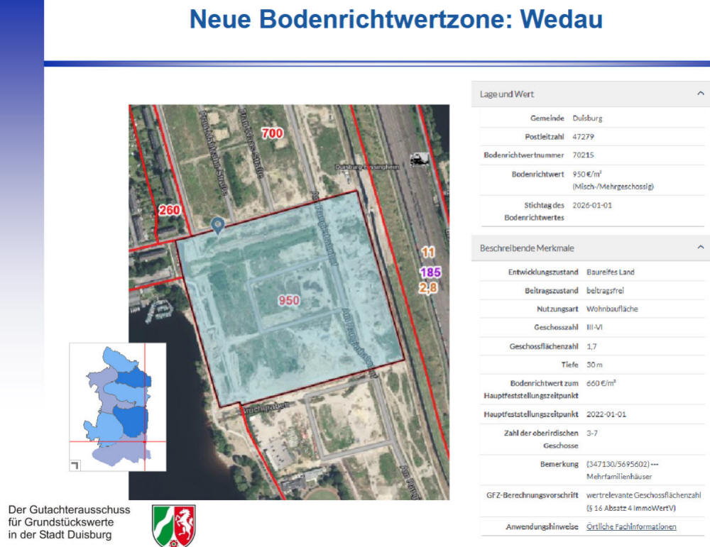 Grundstückswerte in der Stadt Duisburg hat in seiner