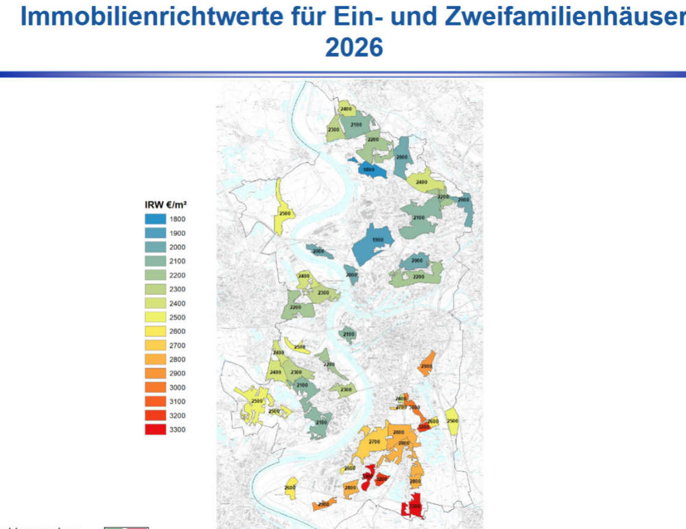 Im Stadtgebiet wurden die Bodenrichtwerte für Ein- und