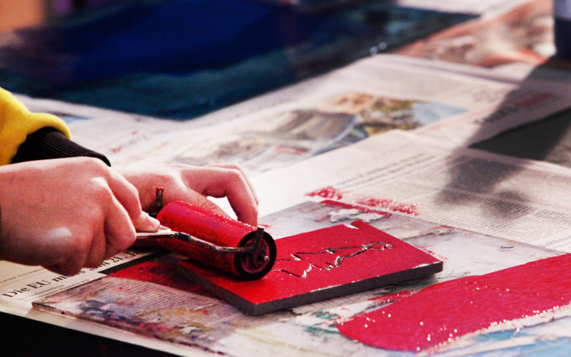trifft Kunst „Drucken mit Holz, Linol und Styrene“