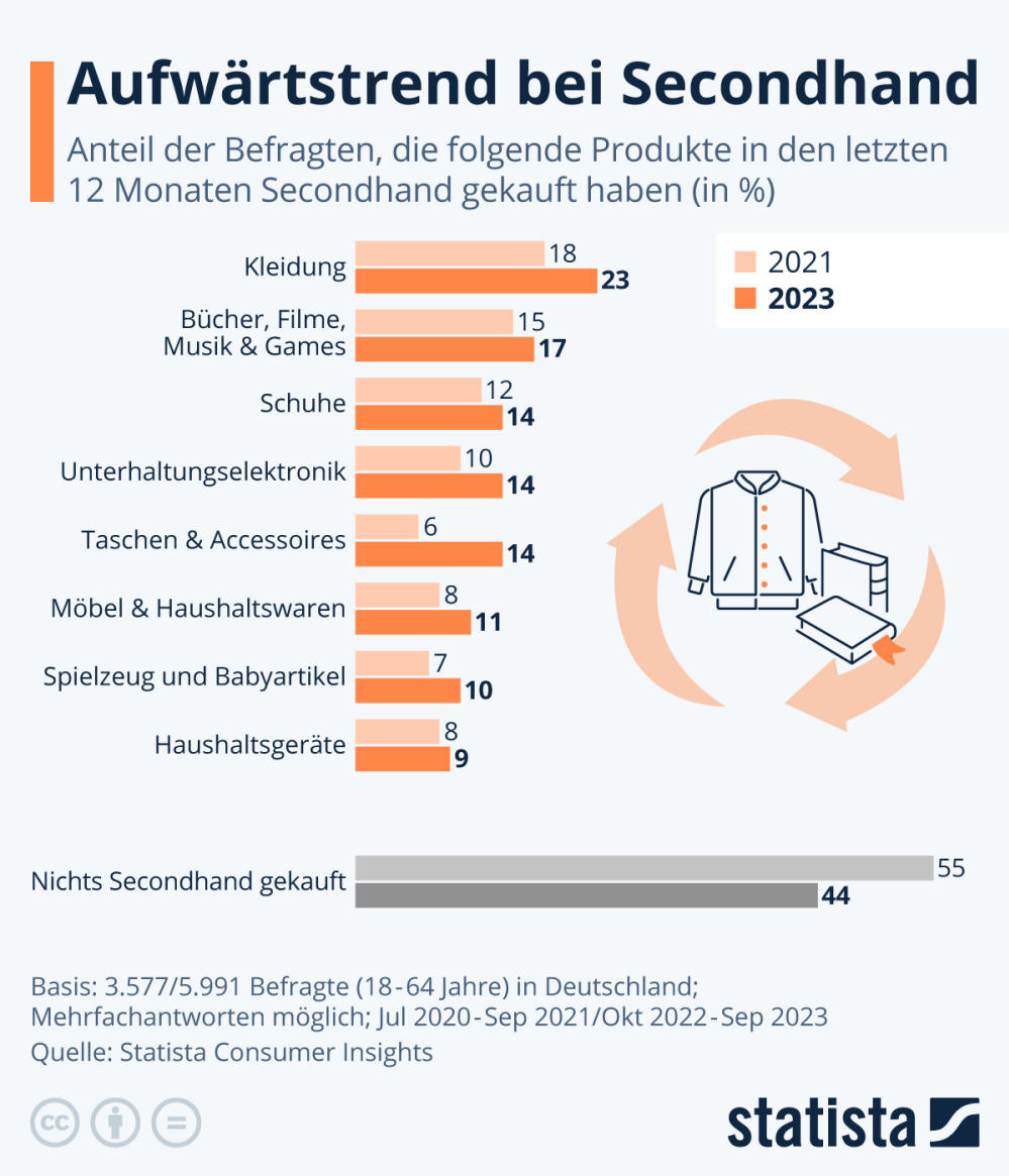 Prozent der Befragten in Deutschland Secondhand-Produkte,