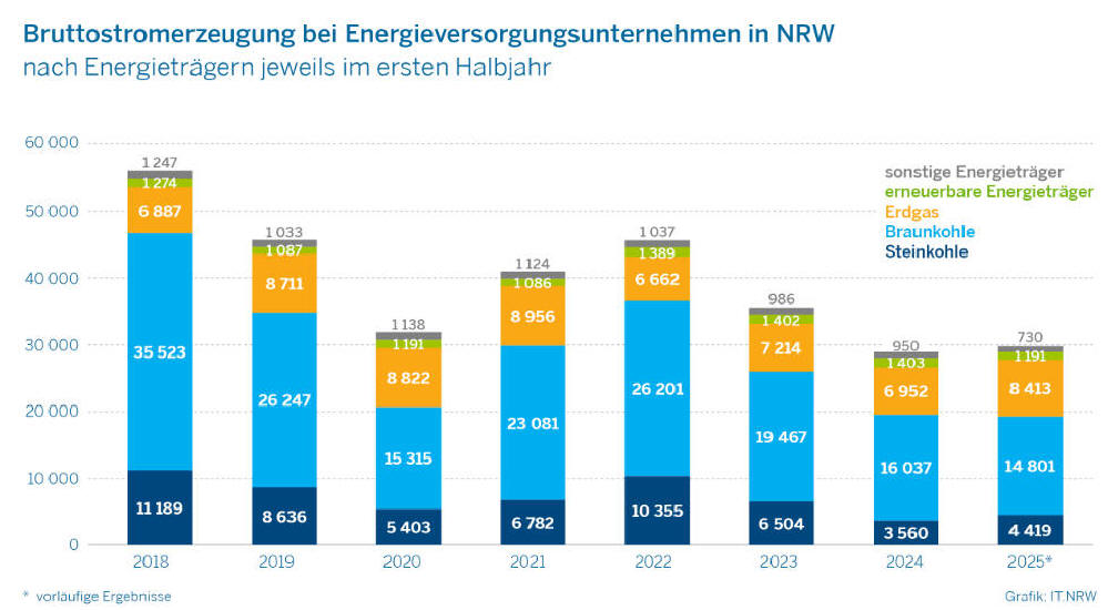 NRW: Bruttostromerzeugung im ersten Halbjahr 2025 um 2,3