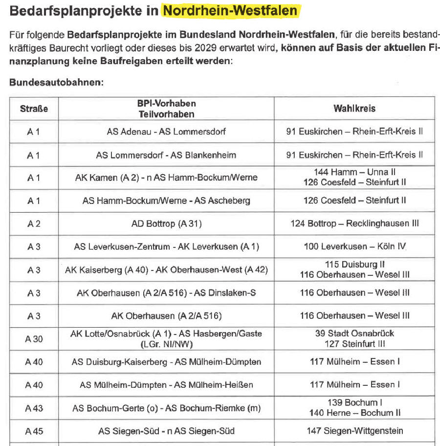 Bundesregierung. Dadurch drohen 74 Autobahnprojekten Verzögerungen –