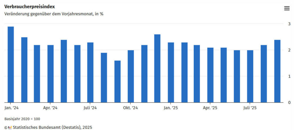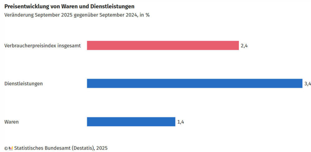 verteuerten sich von September 2024 bis September 2025 um 1,4 %