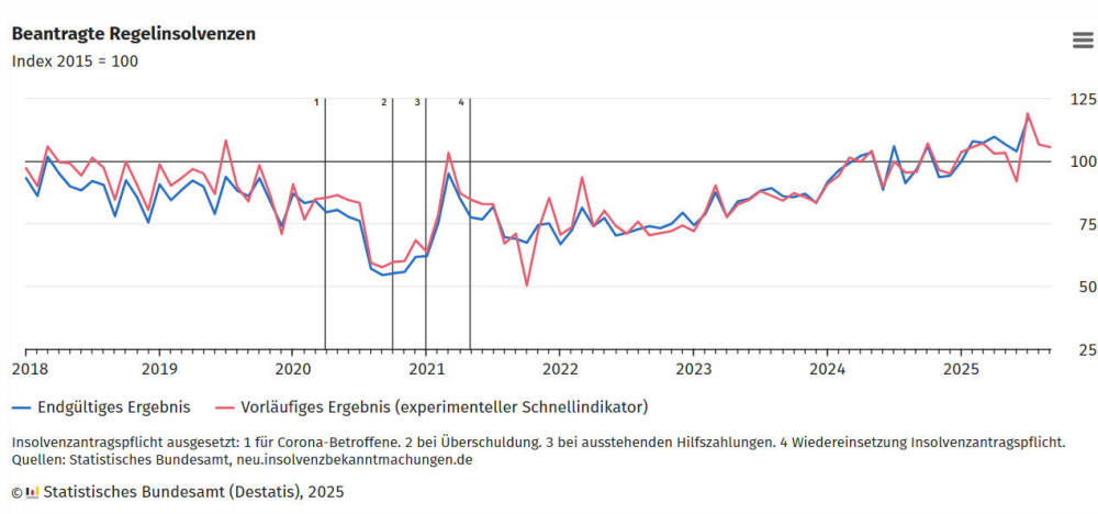 Beantragte Regelinsolvenzen im September 2025: +10,4 %