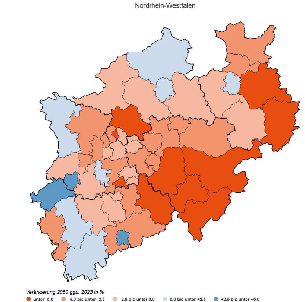 NRW: Rückgang der Einwohnerzahl auf 17,5 Mio. bis 2050