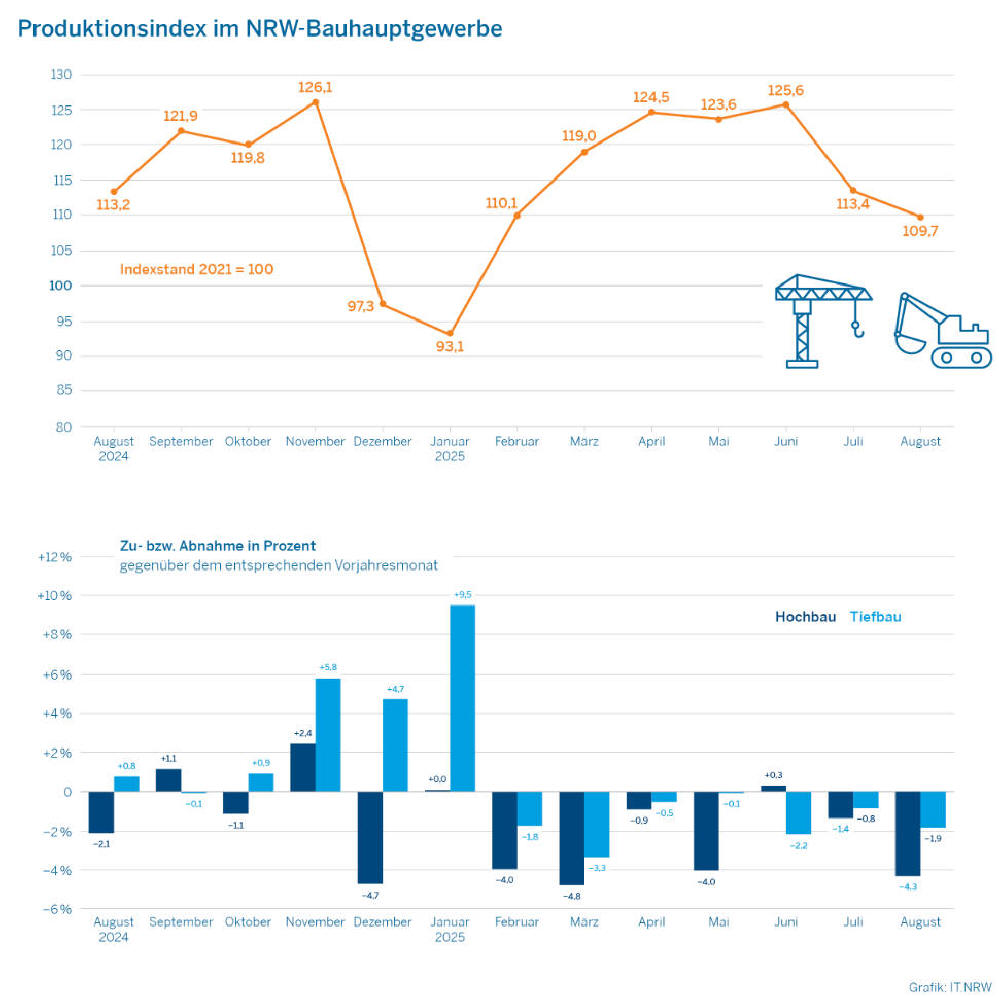 niedriger als im August 2024 aus. Tiefbau: Stärkster