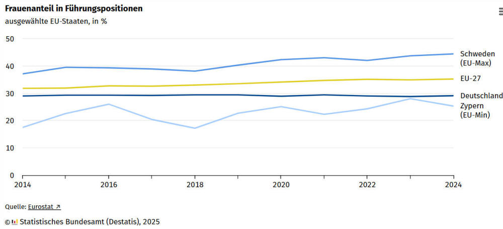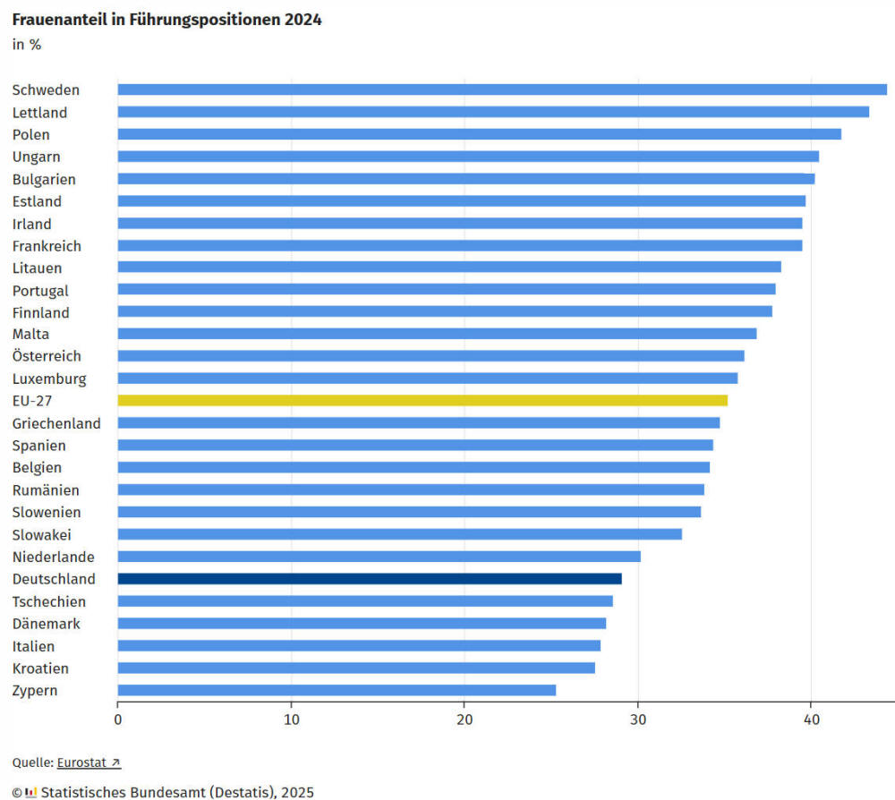 Führungspositionen mit 36,2 % deutlich höher als in Deutschland bei