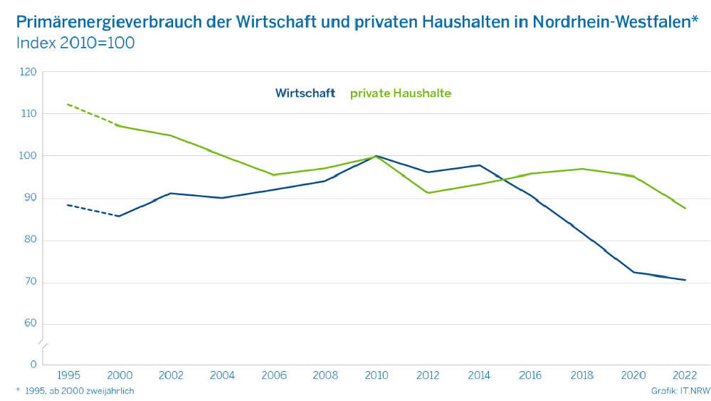 In NRW ist der Primärenergieverbrauch der privaten Haushalte von