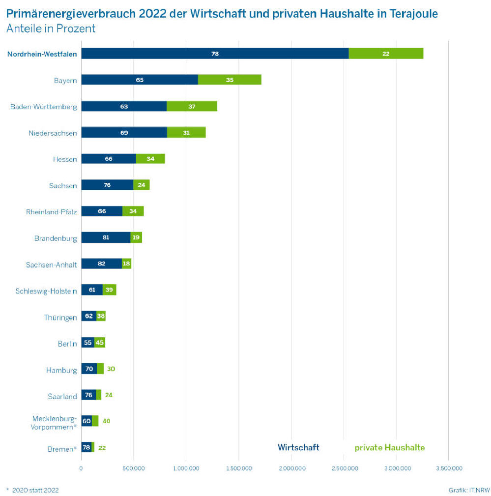 Nordrhein-Westfalen insgesamt 3,3 Millionen Tonnen Terajoule
