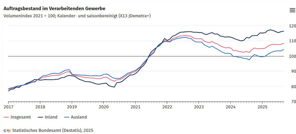 Die offenen Aufträge aus dem Inland stiegen im September 2025