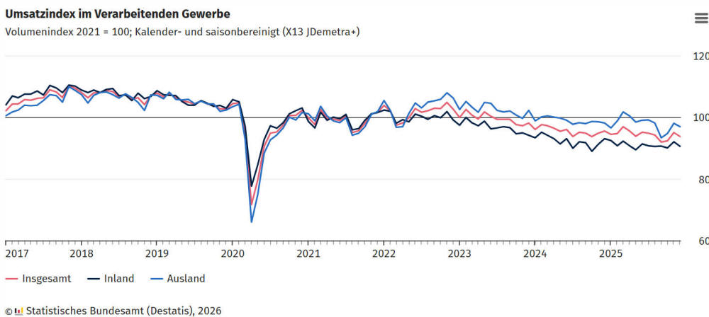 Gesamtjahr 2025 war der reale Umsatz im Verarbeitenden Gewerbe