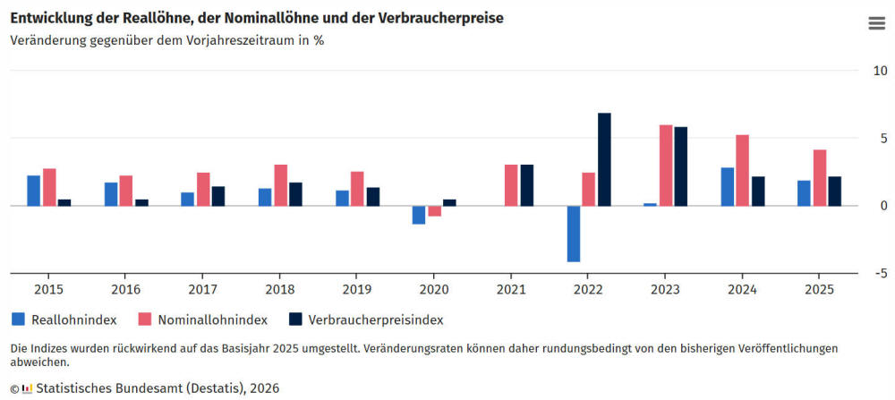 mitteilt, nahmen die Reallöhne im Jahr 2025 damit um 1,9 %