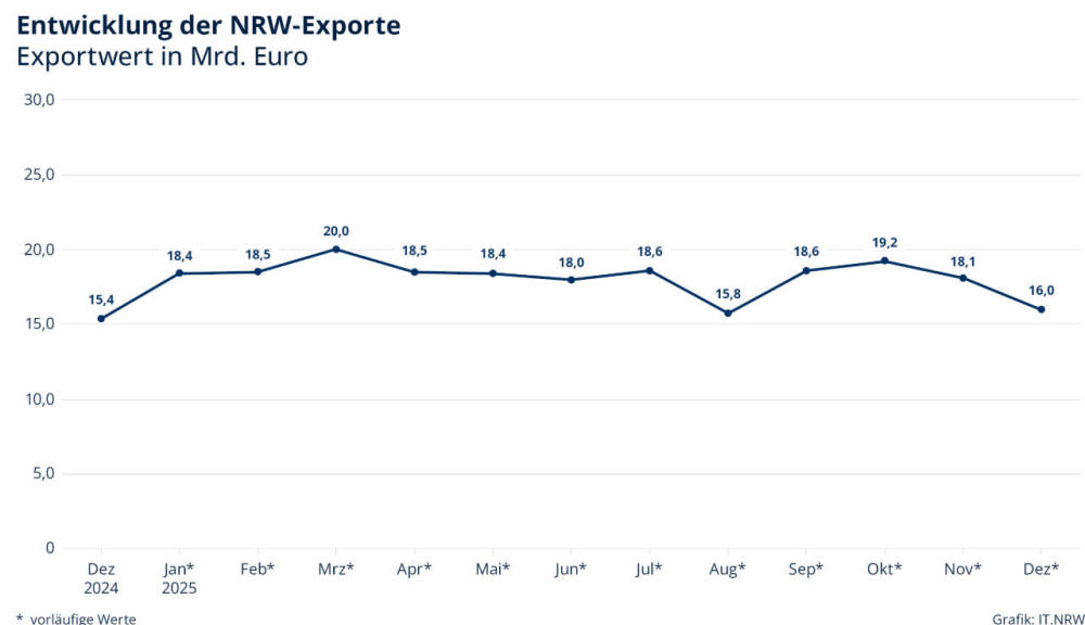 Dezember 2025 erreichte der Exportwert ca. 16 Milliarden