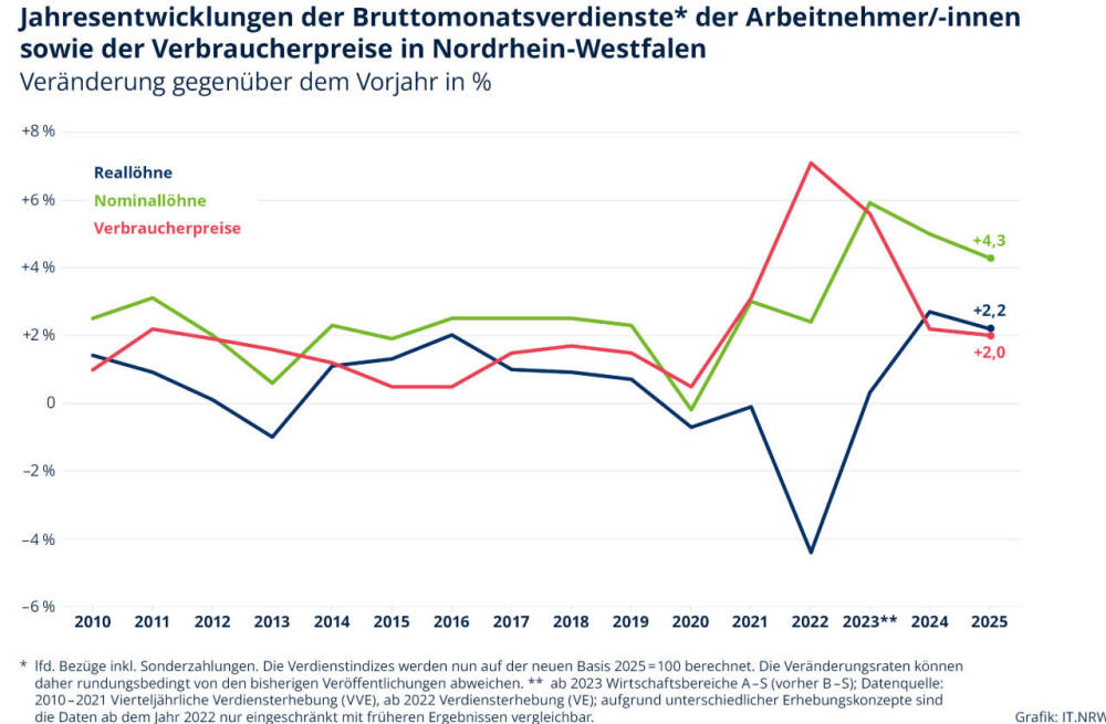 Jahr 2025 um 1,9 % gestiegen - Nominallöhne nehmen im
