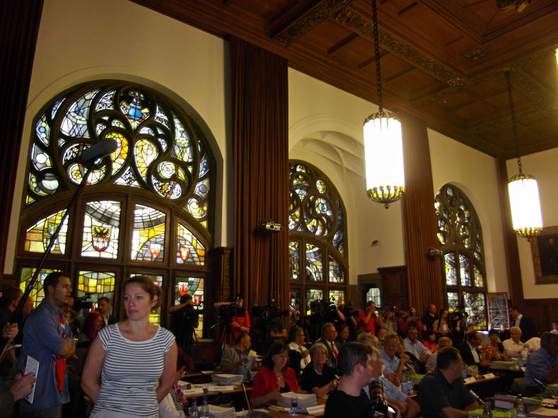 Vor der Beschlussfassung beantragte die CDU-Fraktion 'namentliche Abstimmung'. Der Antrag wurde mit den Stimmen der SPD + BL, Linke und FDP mehrheitlich mit 37 Stimmen angenommen. Herr Hagenbuck (DWG) enthielt sich, CDU, Grüne, 2 DWG und BU stimmten mit 'Nein' (35 Stimmen).
