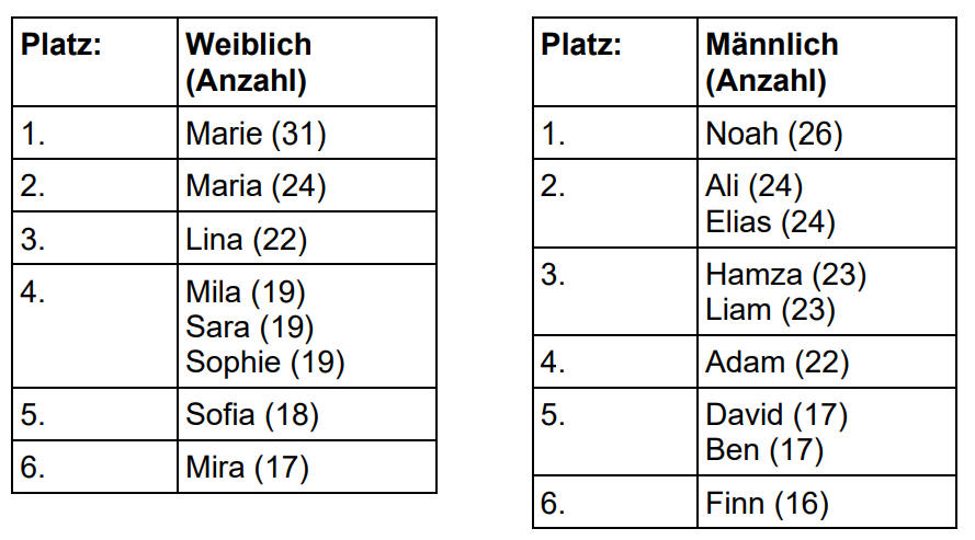 zusammengefasst: „Marie“ bei den Mädchen sowie