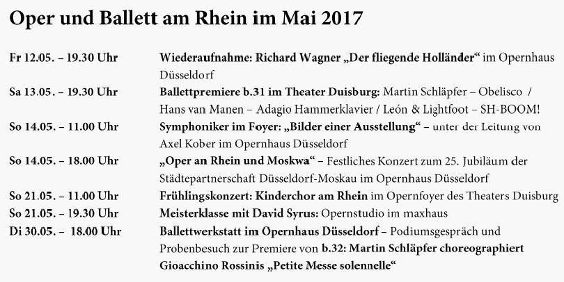 0203.283 62 100) und im Opernshop Düsseldorf (Tel. 0211.89