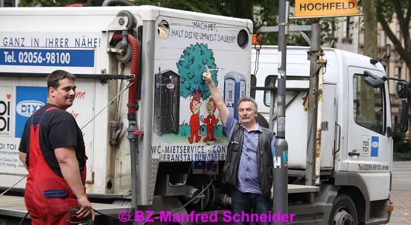 Er hat das Aufstellen der öffentlichen Mobil-Toilette