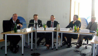 V. L.: Hans Leijten -General Manager Germany KLM Royal Dutch Airlines/ Northwest Airlines, Matthew G. Boyse -Generalkonsul der Vereinigten Staaten von Amerika in NRW, Christoph Blume -Sprecher der Geschäftsführung der Flughafen Düsseldorf GmbH |