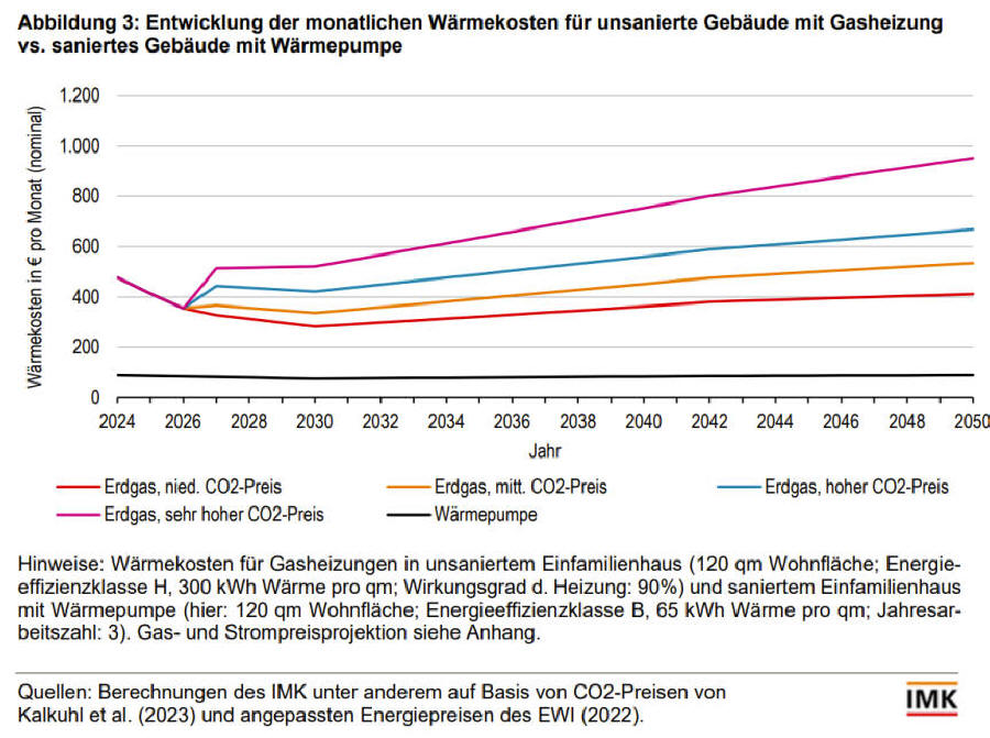 Gas bei 400 Euro lägen und die mit Wärmepumpe bei 100,