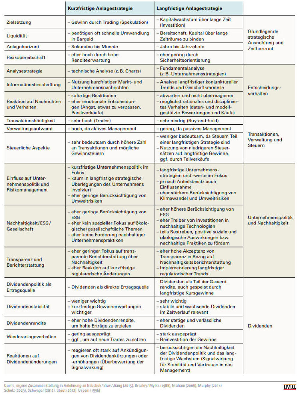 Gegenüberstellung kurz- und langfristiger Anlagestrategien