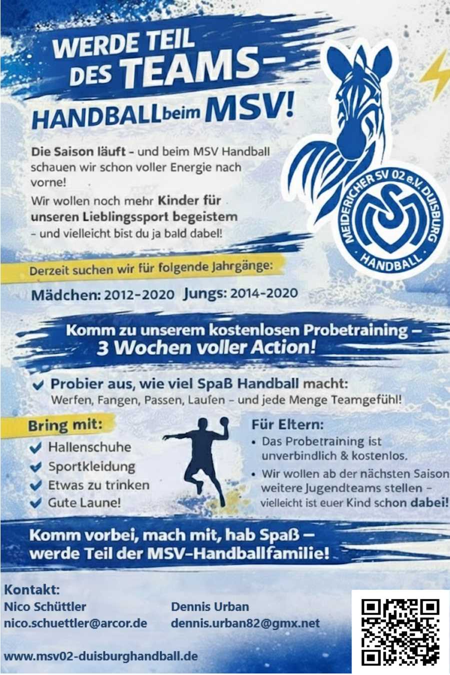 Duisburg, März 2026 - Der MSV Duisburg 02 Handball e. V. möchte seine Jugendarbeit
