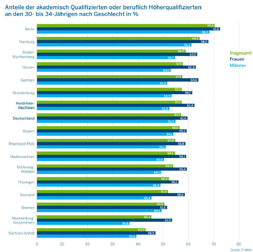 Höherqualifizierten bei den 30- bis 34-Jährigen lag in NRW 2024 bei