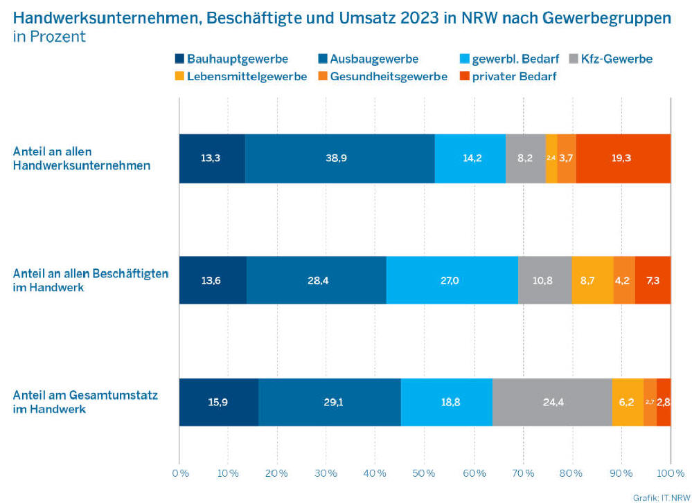 insgesamt jedes zweite Handwerksunternehmen in NRW im Baugewerbe