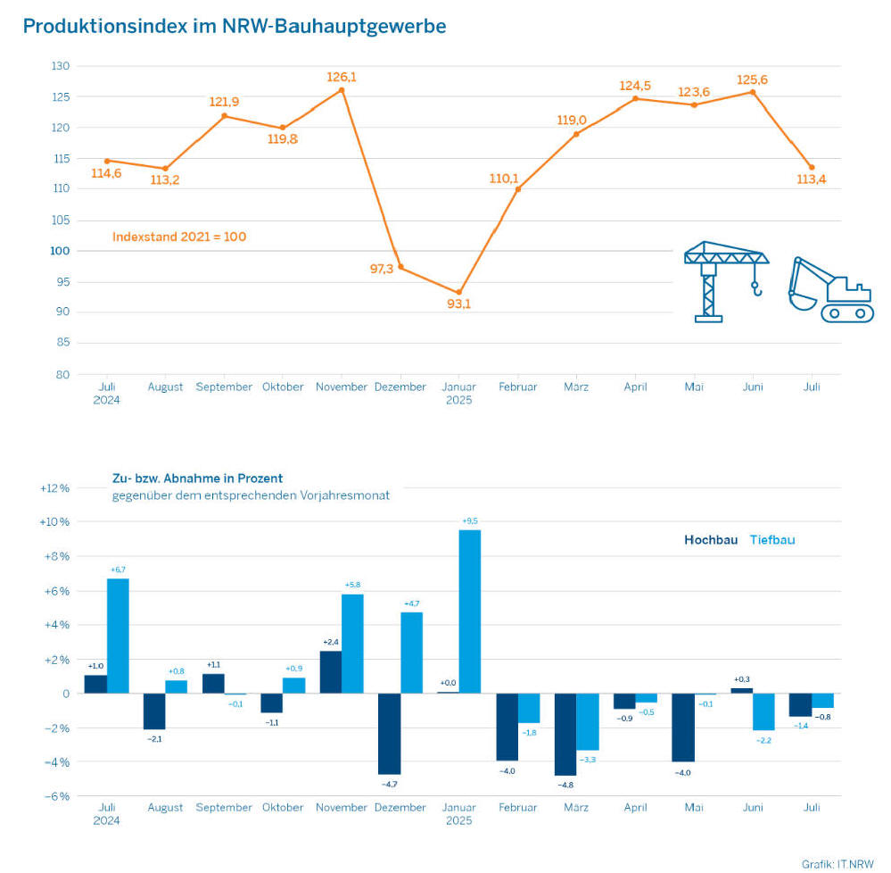 im nordrhein-westfälischen Bauhauptgewerbe war im Juli 2025 um 1,1 %