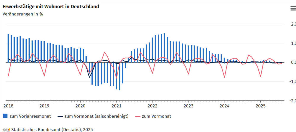 Erwerbstätigkeit im August 2025 nahezu unverändert 0,0